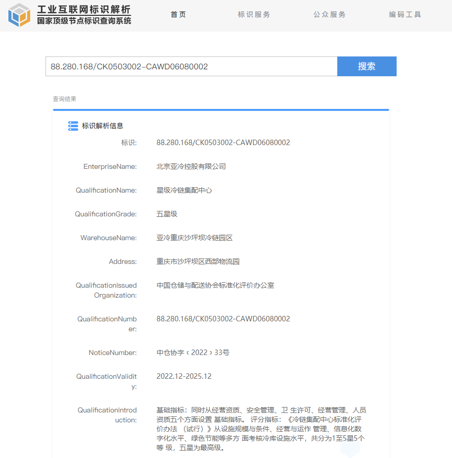 這是行業(yè)內(nèi)首次建立冷鏈集配中心標準化體系,并且開展的第一批等級資質評標項目,亞冷重慶沙坪壩冷鏈園區(qū)一舉拿到最高標準“五星級冷鏈集配中心”資質,這代表著該園區(qū)在設施規(guī)模與條件、經(jīng)營與運作管理、信息化數(shù)字化水平、綠色節(jié)能等多方面均達到國內(nèi)頂尖水平。這得益于亞冷是同行業(yè)中體系標準建設起步早、標準較高、執(zhí)行較好的企業(yè)。